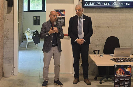 Connections with Gaza, South Sudan, Ukraine, and the USA. We also discussed El Salvador, Iran, and Bangladesh. Speakers included: Maurizio Verona (President of the National Peace Park and Mayor of Stazzema), Gennaro Giudetti (humanitarian worker), Enzo Cursio (activist and senior FAO official), Angela Iantosca (writer), Kerry Kennedy (human rights activist), Federico Moro (Secretary General of Robert F. Kennedy Human Rights Italy), Fabio Tonacci (Repubblica correspondent in the Middle East), Vito Alfieri Fontana (deminer and writer), Antonio Sanfrancesco (Famiglia Cristiana journalist), Sorelle Pardini (survivors of the Sant'Anna massacre), Saeed Aman (Iranian musician), Massimiliano Padula (sociologist and Professor at the Pontifical Lateran University), Adriana Grispo (President of the Rotary Peace Commission Calabria), Halyna Yenko (Ukrainian Parliamentarian of Borodyanka), Father Charbel (Lebanese parish priest of Byblon), Christian Carlassare (Bishop in South Sudan). At the end of the conference, Father Charbel gave a blessing at the Shrine of the Martyrs of St. Anne, and Claudia performed songs accompanied by Maurizio on guitar. Television coverage by RTV38 and Canale 50